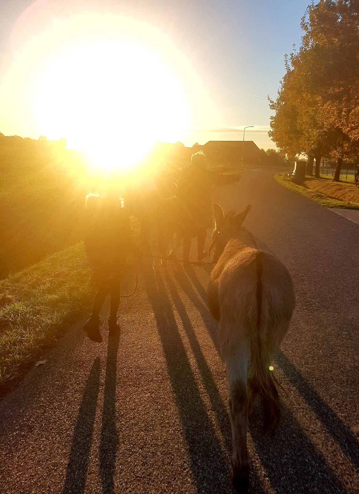 Terug naar afgelopen weekend, toen waren we bij mijn ouders. Op deze foto wandelen de kids met hun ezeltjes Koos en Janus, zó leuk 💖!