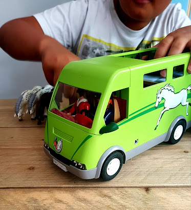 In de naastgelegen megagrote speelgoedwinkel kocht Thomas van zijn zakgeld een Playmobil paardentrailer.